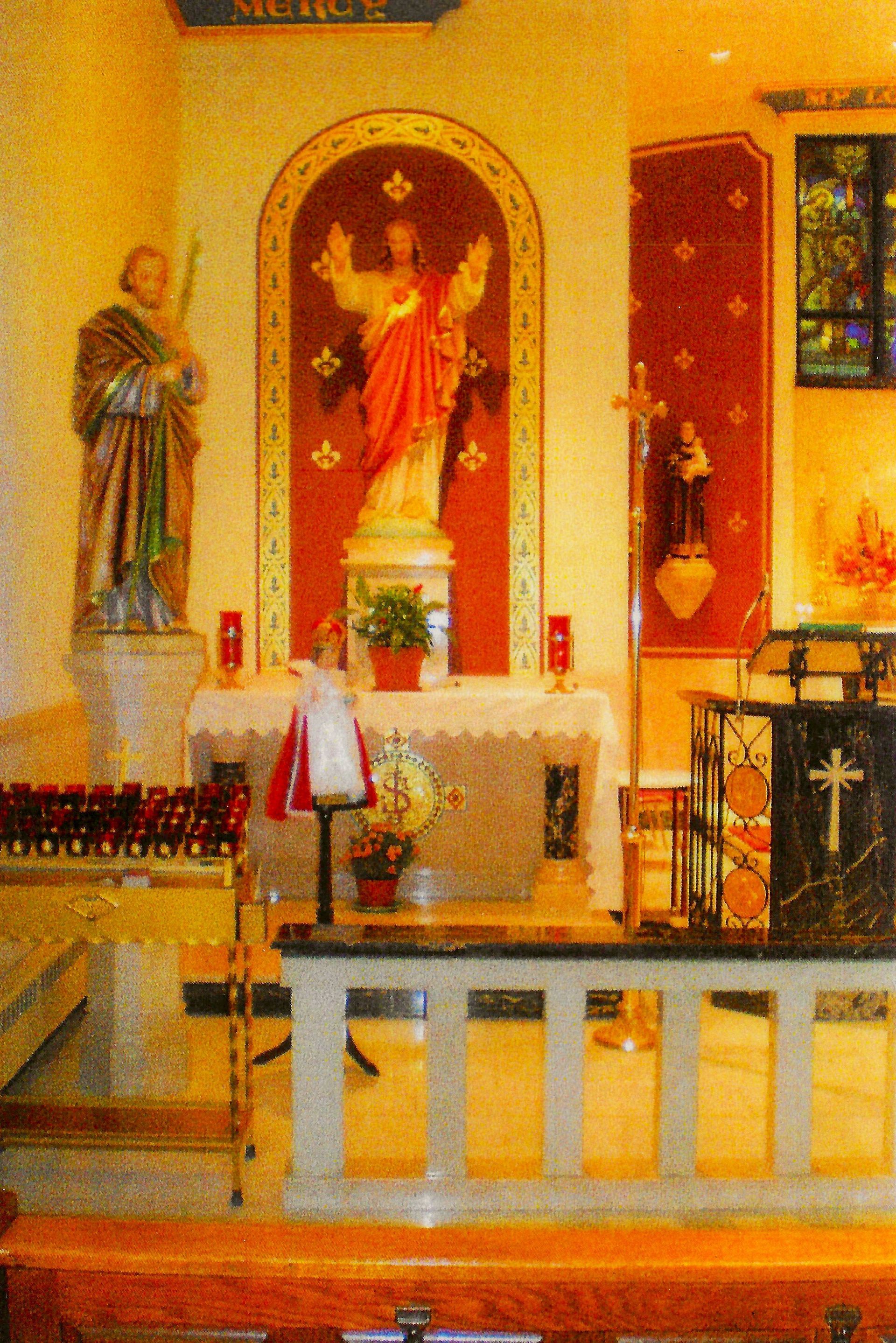Above: A mass being celebrated shortly after the July 1930 completion of the church.